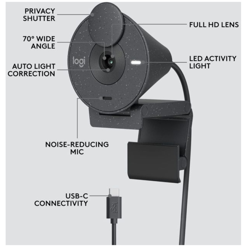 pokriva lečo, ko ni v uporabi. Izdelal vodilni na trgu v spletnih kamerah. Deluje z vašim obstoječim IT ekosistem in ga je mogoče upravljati in posodabljati na daljavo prek Logitech Sync. Izdelano iz vsaj 48 % reciklirane plastike z idejo podpreti bolj pravičen in podnebno pozitiven svet.