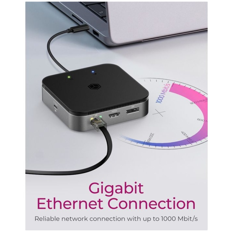 Icybox IB-DK408-C41 priključna postaja USB4 z dvojnim video izhodom 7v1, 60W PowerDelivery napajanje