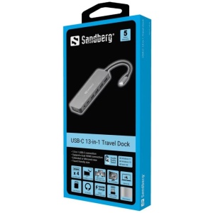 Z le eno povezavo USB-C z vašim prenosnikom vam priklopna postaja Sandberg USB-C 13-in-1 Travel Dock daje možnost povezave vse vaše opreme:
