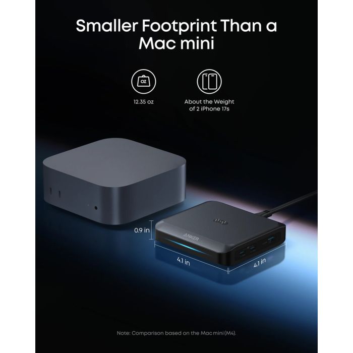 - Polnjenje 4 naprav hkrati: Napajajte do štiri naprave istočasno z enim 140 W USB-C1 priključkom, enim 100 W USB-C2 priključkom, 22,5 W USB-A priključkom in 150 W izhodom prek pogo pina za vaš Anker Prime Power Bank. Pri hkratnem polnjenju štirih naprav polnilna baza zagotavlja skupno izhodno moč do 150 W.