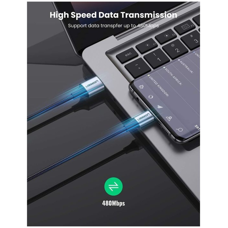 – UGREEN USB-C kabel podpira QC3.0/AFC/FCP
