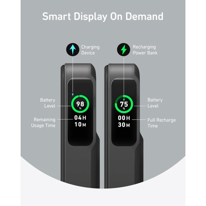 spremljajte pot polnjenja vaše naprave. Od odstotkov baterije do časa polnega polnjenja, intuitivni pametni zaslon zagotavlja, da ste vedno posodobljeni.