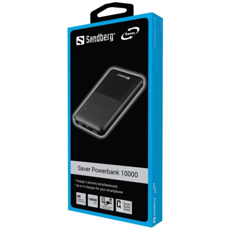 Prenosna baterija Sandberg Saver Powerbank 10000 se napaja preko vhoda USB, energijo pa lahko nato prenese v mobilni telefon ali drugo prenosno napravo.